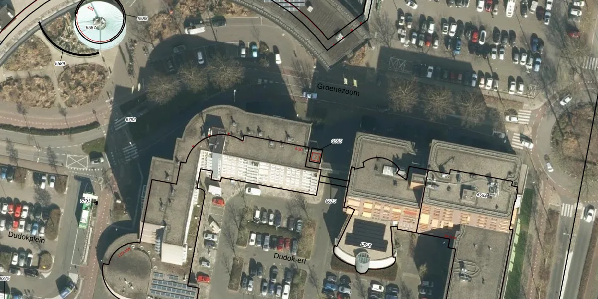 Het perceel waarop Dudok-erf 4 staat heeft een oppervlakte van 1597 m². Dit is een zeer groot perceel. De perceeloppervlakte wordt geregistreerd door het Kadaster. Gedetailleerde informatie over de maten van dit perceel kunt u vinden in het rapport Kadastrale kaart met maatvoering van Dudok-erf 4.
