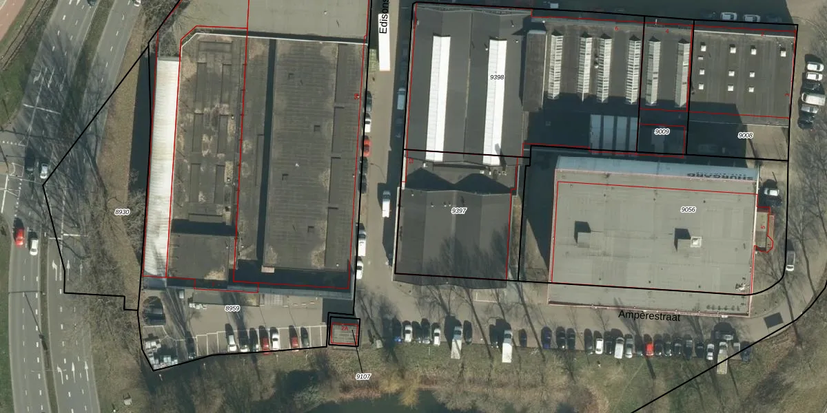 Het perceel waarop Edisonstraat 12 staat heeft een oppervlakte van 900 m². Dit is een groot perceel. De perceeloppervlakte wordt geregistreerd door het Kadaster. Gedetailleerde informatie over de maten van dit perceel kunt u vinden in het rapport Kadastrale kaart met maatvoering van Edisonstraat 12.