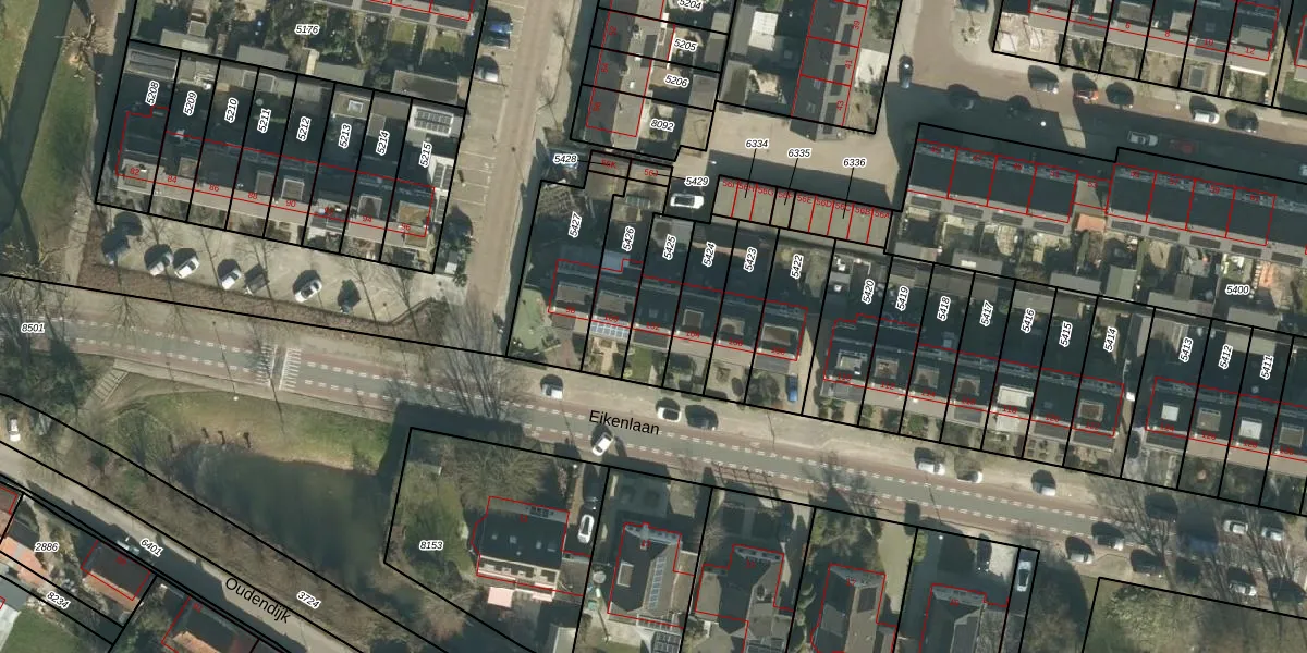 Eikenlaan 102 is gelegen op kadastraal perceel DBD00A5425. Deze kadastrale aanduiding is uniek en wordt gebruikt door het Kadaster om eigendomsrechten en andere zakelijke rechten vast te leggen. Het perceel maakt onderdeel uit van de kadastrale gemeente Dubbeldam.