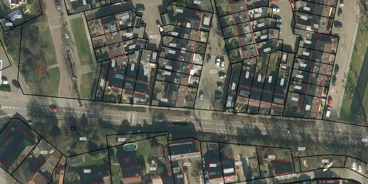 Eikenlaan 30 is gelegen op kadastraal perceel DBD00A6092. Deze kadastrale aanduiding is uniek en wordt gebruikt door het Kadaster om eigendomsrechten en andere zakelijke rechten vast te leggen. Het perceel maakt onderdeel uit van de kadastrale gemeente Dubbeldam.