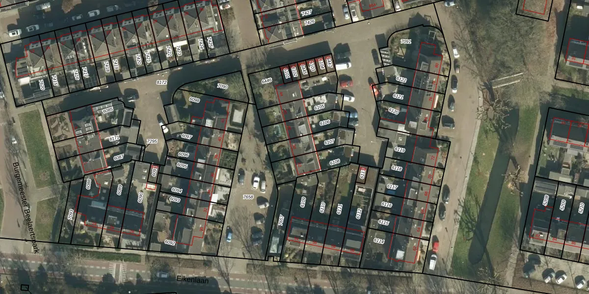 Eikenlaan 50 is gelegen op kadastraal perceel DBD00A6107. Deze kadastrale aanduiding is uniek en wordt gebruikt door het Kadaster om eigendomsrechten en andere zakelijke rechten vast te leggen. Het perceel maakt onderdeel uit van de kadastrale gemeente Dubbeldam.
