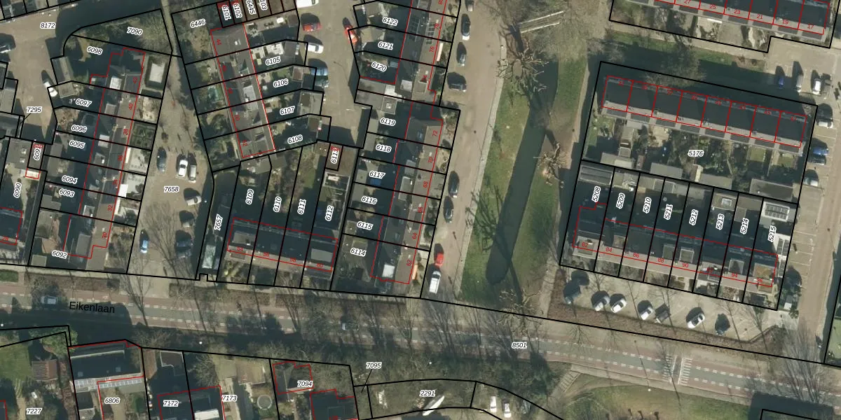 Eikenlaan 66 is gelegen op kadastraal perceel DBD00A6116. Deze kadastrale aanduiding is uniek en wordt gebruikt door het Kadaster om eigendomsrechten en andere zakelijke rechten vast te leggen. Het perceel maakt onderdeel uit van de kadastrale gemeente Dubbeldam.