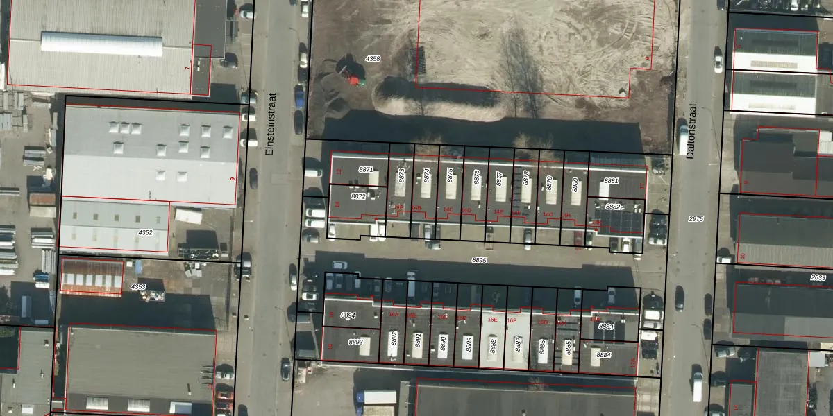 Einsteinstraat 14-B is gelegen op kadastraal perceel DDT00Q8874. Deze kadastrale aanduiding is uniek en wordt gebruikt door het Kadaster om eigendomsrechten en andere zakelijke rechten vast te leggen. Het perceel maakt onderdeel uit van de kadastrale gemeente Dordrecht.