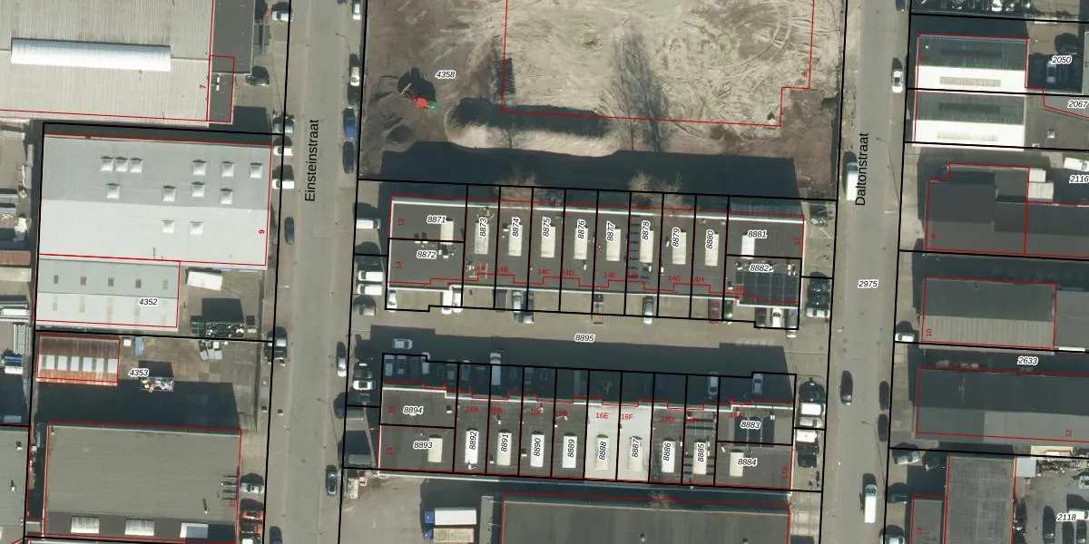Einsteinstraat 14-C is gelegen op kadastraal perceel DDT00Q8875. Deze kadastrale aanduiding is uniek en wordt gebruikt door het Kadaster om eigendomsrechten en andere zakelijke rechten vast te leggen. Het perceel maakt onderdeel uit van de kadastrale gemeente Dordrecht.