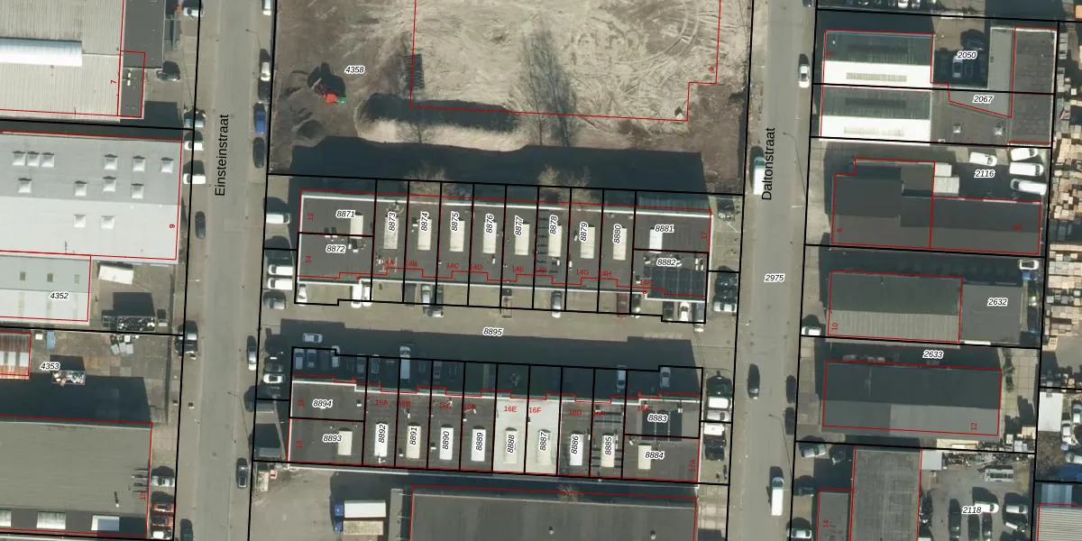 Het perceel waarop Einsteinstraat 14-F staat heeft een oppervlakte van 137 m². Dit is een middelgroot perceel. De perceeloppervlakte wordt geregistreerd door het Kadaster. Gedetailleerde informatie over de maten van dit perceel kunt u vinden in het rapport Kadastrale kaart met maatvoering van Einsteinstraat 14-F.
