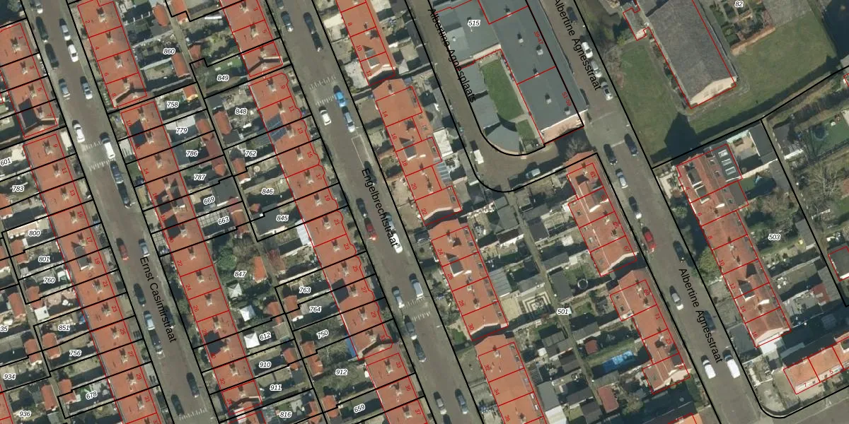 Het perceel waarop Engelbrechtstraat 22 staat heeft een oppervlakte van 5915 m². Dit is een zeer groot perceel. De perceeloppervlakte wordt geregistreerd door het Kadaster. Gedetailleerde informatie over de maten van dit perceel kunt u vinden in het rapport Kadastrale kaart met maatvoering van Engelbrechtstraat 22.