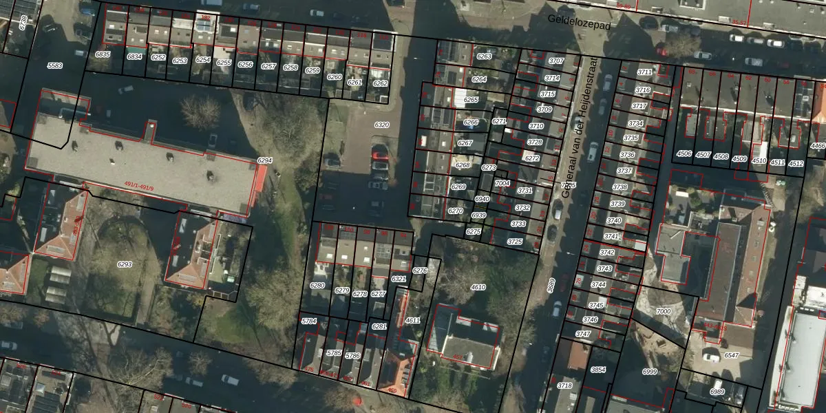 Gebruik de zoekbalk of klik op een perceel voor informatie over de adressen binnen dit perceel.