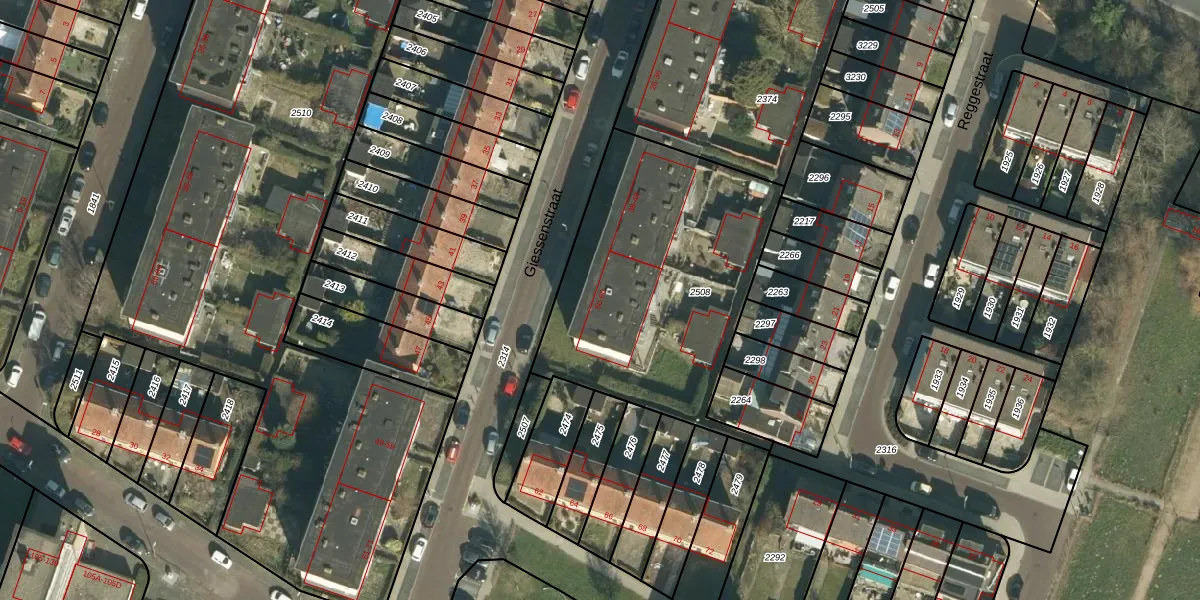 Giessenstraat 54 is gelegen op kadastraal perceel DDT00I2508. Deze kadastrale aanduiding is uniek en wordt gebruikt door het Kadaster om eigendomsrechten en andere zakelijke rechten vast te leggen. Het perceel maakt onderdeel uit van de kadastrale gemeente Dordrecht.