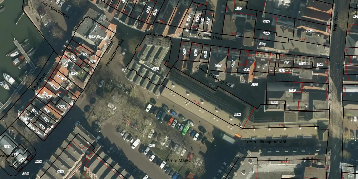 Het perceel waarop Grote Markt 92 staat heeft een oppervlakte van 1165 m². Dit is een zeer groot perceel. De perceeloppervlakte wordt geregistreerd door het Kadaster. Gedetailleerde informatie over de maten van dit perceel kunt u vinden in het rapport Kadastrale kaart met maatvoering van Grote Markt 92.