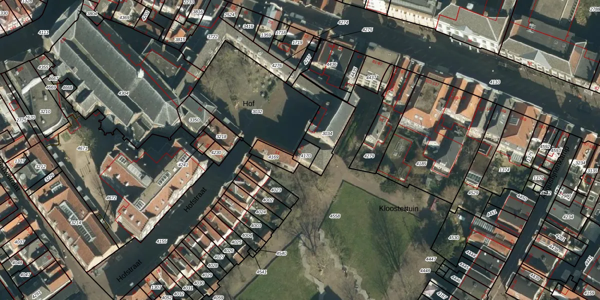 Het perceel waarop Hof 12 staat heeft een oppervlakte van 49 m². Dit is een klein perceel. De perceeloppervlakte wordt geregistreerd door het Kadaster. Gedetailleerde informatie over de maten van dit perceel kunt u vinden in het rapport Kadastrale kaart met maatvoering van Hof 12.