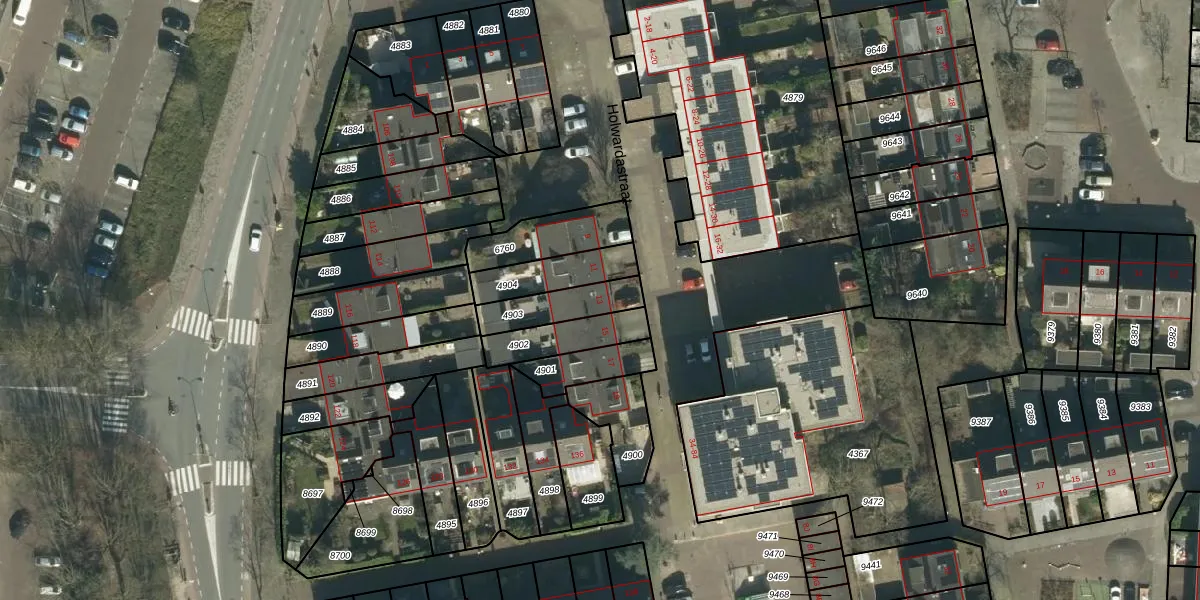 Holwardastraat 13 is gelegen op kadastraal perceel DDT00Q4903. Deze kadastrale aanduiding is uniek en wordt gebruikt door het Kadaster om eigendomsrechten en andere zakelijke rechten vast te leggen. Het perceel maakt onderdeel uit van de kadastrale gemeente Dordrecht.