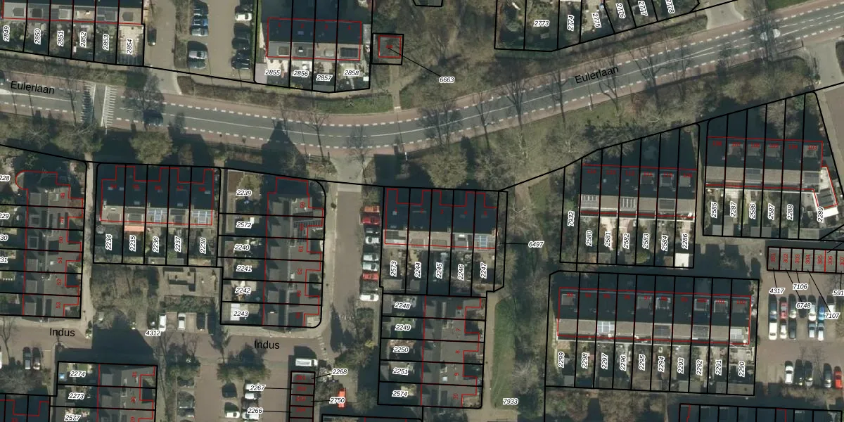 Indus 2 is gelegen op kadastraal perceel DDT00Q2244. Deze kadastrale aanduiding is uniek en wordt gebruikt door het Kadaster om eigendomsrechten en andere zakelijke rechten vast te leggen. Het perceel maakt onderdeel uit van de kadastrale gemeente Dordrecht.