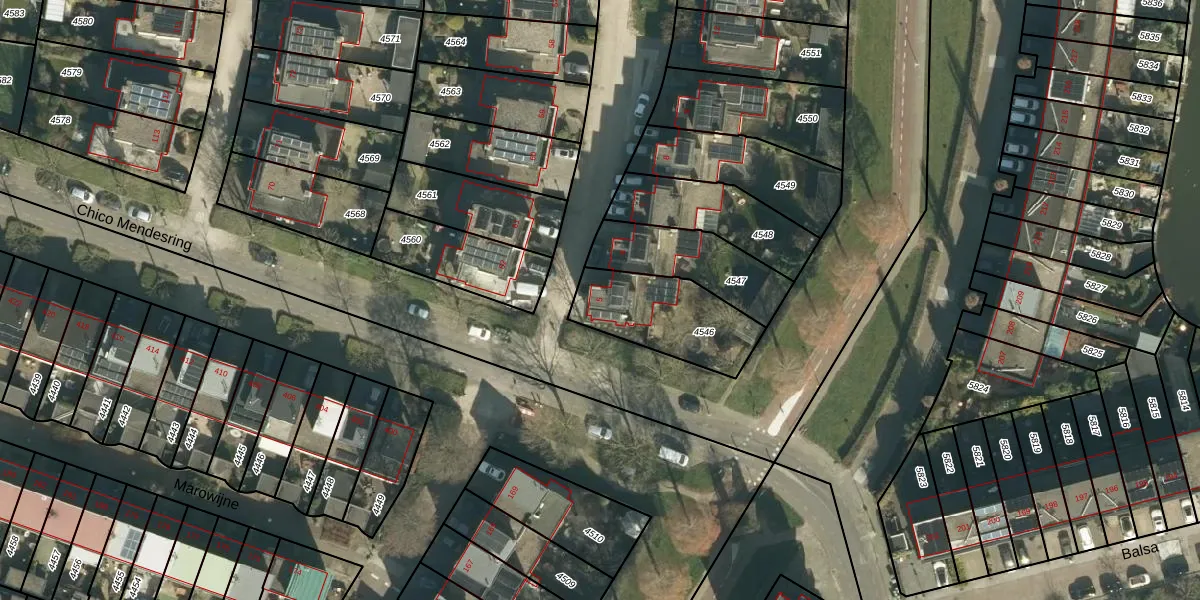 Het perceel waarop Iroko 5 staat heeft een oppervlakte van 348 m². Dit is een groot perceel. De perceeloppervlakte wordt geregistreerd door het Kadaster. Gedetailleerde informatie over de maten van dit perceel kunt u vinden in het rapport Kadastrale kaart met maatvoering van Iroko 5.