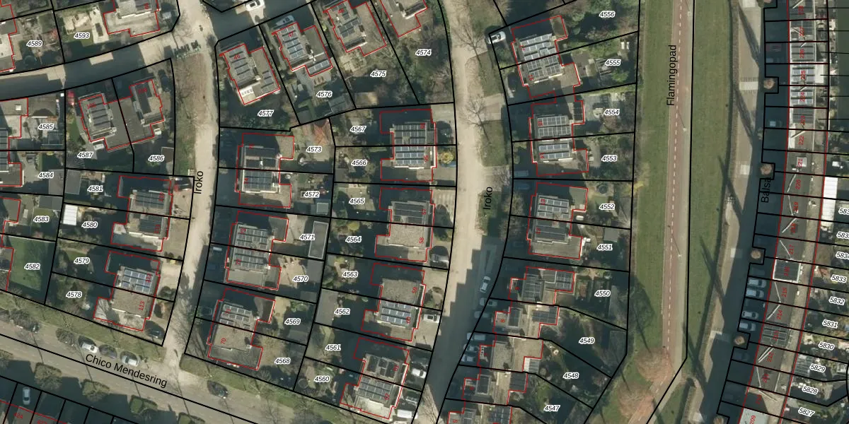 Het perceel waarop Iroko 57 staat heeft een oppervlakte van 265 m². Dit is een middelgroot perceel. De perceeloppervlakte wordt geregistreerd door het Kadaster. Gedetailleerde informatie over de maten van dit perceel kunt u vinden in het rapport Kadastrale kaart met maatvoering van Iroko 57.