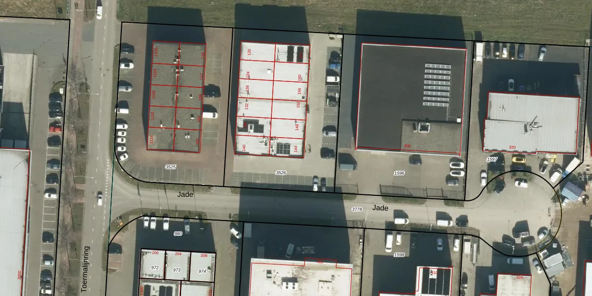 Het perceel waarop Jade 144 staat heeft een oppervlakte van 2010 m². Dit is een zeer groot perceel. De perceeloppervlakte wordt geregistreerd door het Kadaster. Gedetailleerde informatie over de maten van dit perceel kunt u vinden in het rapport Kadastrale kaart met maatvoering van Jade 144.