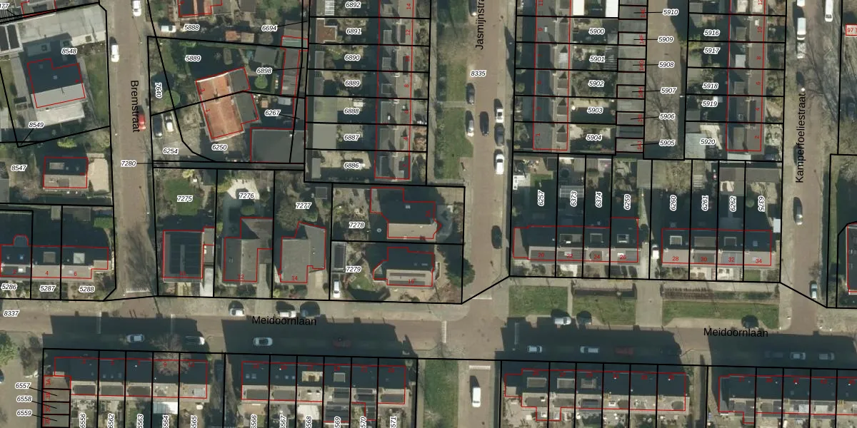 Het perceel waarop Jasmijnstraat 2-A staat heeft een oppervlakte van 414 m². Dit is een groot perceel. De perceeloppervlakte wordt geregistreerd door het Kadaster. Gedetailleerde informatie over de maten van dit perceel kunt u vinden in het rapport Kadastrale kaart met maatvoering van Jasmijnstraat 2-A.
