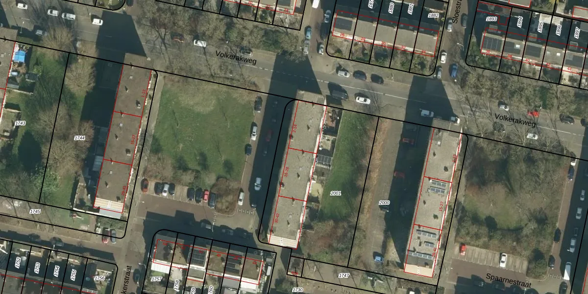 Het perceel waarop Jekerstraat 2 staat heeft een oppervlakte van 1637 m². Dit is een zeer groot perceel. De perceeloppervlakte wordt geregistreerd door het Kadaster. Gedetailleerde informatie over de maten van dit perceel kunt u vinden in het rapport Kadastrale kaart met maatvoering van Jekerstraat 2.