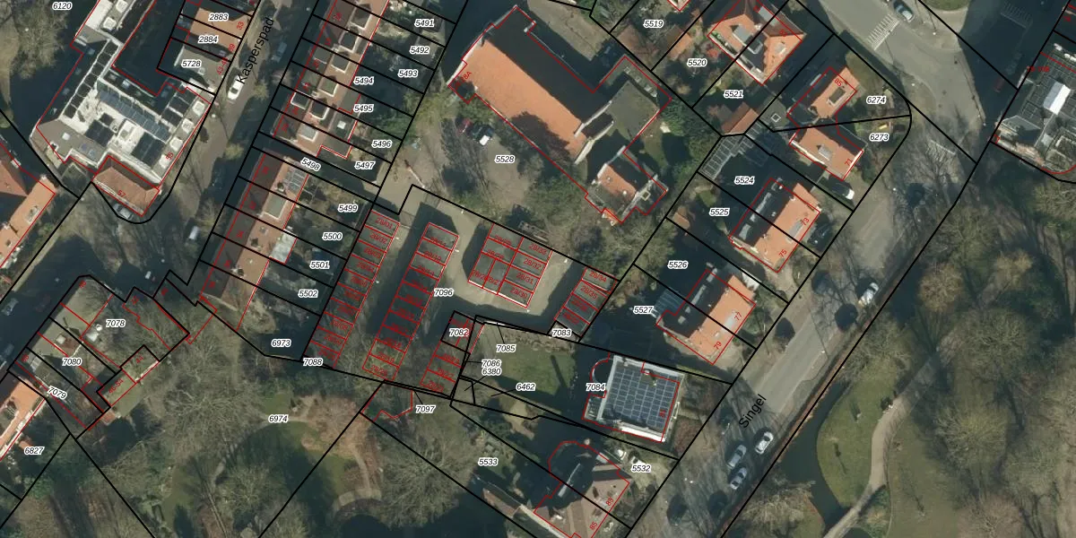 Het perceel waarop Kasperspad 28-32 staat heeft een oppervlakte van 1192 m². Dit is een zeer groot perceel. De perceeloppervlakte wordt geregistreerd door het Kadaster. Gedetailleerde informatie over de maten van dit perceel kunt u vinden in het rapport Kadastrale kaart met maatvoering van Kasperspad 28-32.