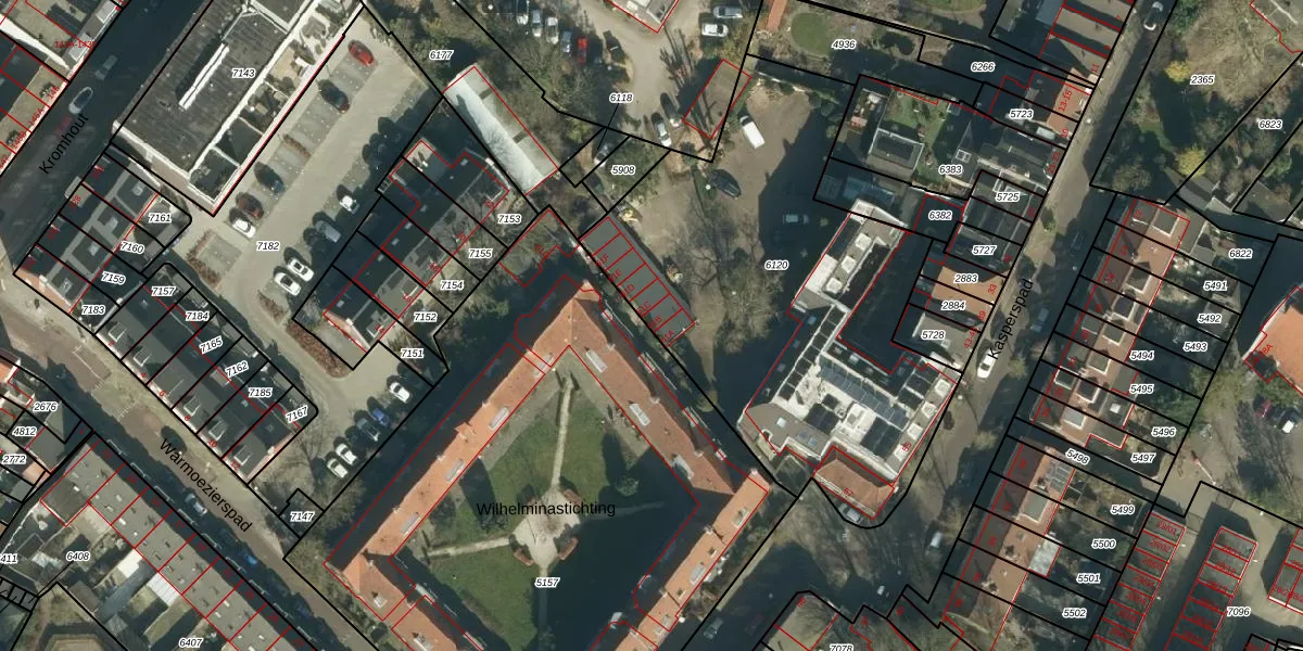 Het perceel waarop Kasperspad 61-B staat heeft een oppervlakte van 2096 m². Dit is een zeer groot perceel. De perceeloppervlakte wordt geregistreerd door het Kadaster. Gedetailleerde informatie over de maten van dit perceel kunt u vinden in het rapport Kadastrale kaart met maatvoering van Kasperspad 61-B.