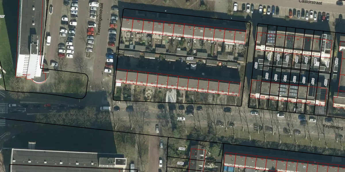 Het perceel waarop Keplerweg 45 staat heeft een oppervlakte van 3802 m². Dit is een zeer groot perceel. De perceeloppervlakte wordt geregistreerd door het Kadaster. Gedetailleerde informatie over de maten van dit perceel kunt u vinden in het rapport Kadastrale kaart met maatvoering van Keplerweg 45.