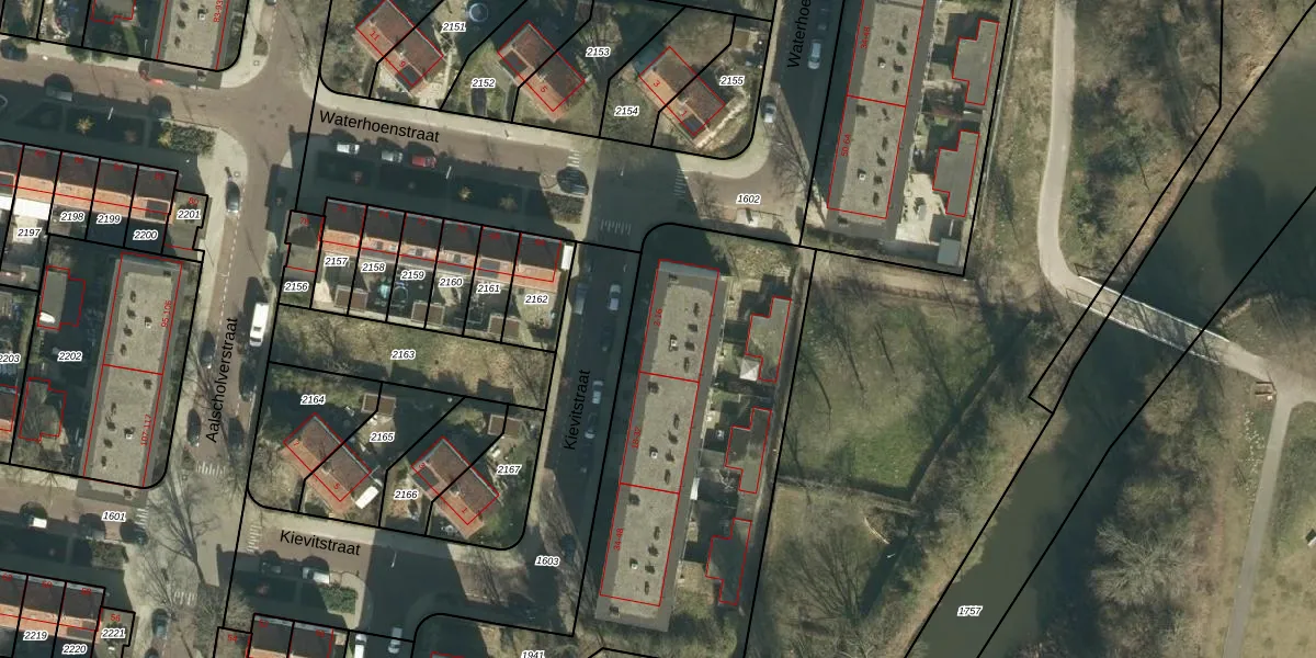 Het perceel waarop Kievitstraat 10 staat heeft een oppervlakte van 5410 m². Dit is een zeer groot perceel. De perceeloppervlakte wordt geregistreerd door het Kadaster. Gedetailleerde informatie over de maten van dit perceel kunt u vinden in het rapport Kadastrale kaart met maatvoering van Kievitstraat 10.
