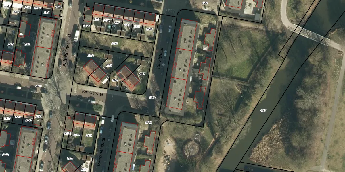 Het perceel waarop Kievitstraat 40 staat heeft een oppervlakte van 5410 m². Dit is een zeer groot perceel. De perceeloppervlakte wordt geregistreerd door het Kadaster. Gedetailleerde informatie over de maten van dit perceel kunt u vinden in het rapport Kadastrale kaart met maatvoering van Kievitstraat 40.