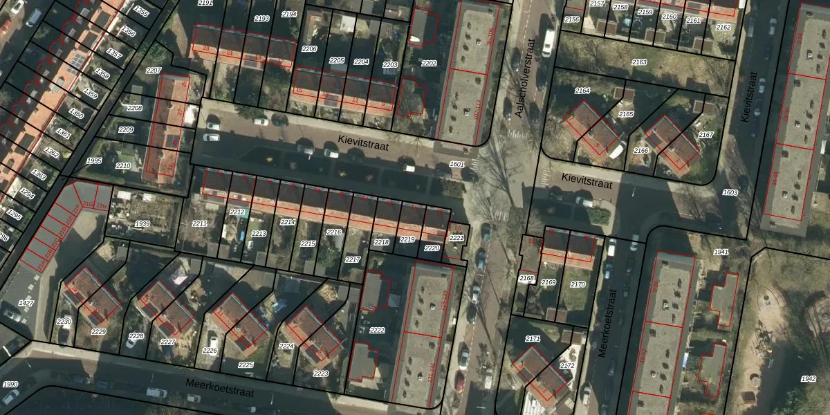 Het perceel waarop Kievitstraat 60 staat heeft een oppervlakte van 77 m². Dit is een klein perceel. De perceeloppervlakte wordt geregistreerd door het Kadaster. Gedetailleerde informatie over de maten van dit perceel kunt u vinden in het rapport Kadastrale kaart met maatvoering van Kievitstraat 60.