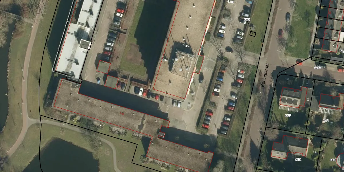Het perceel waarop Koningstraat 198 staat heeft een oppervlakte van 2,8 ha. Dit is een zeer groot perceel. De perceeloppervlakte wordt geregistreerd door het Kadaster. Gedetailleerde informatie over de maten van dit perceel kunt u vinden in het rapport Kadastrale kaart met maatvoering van Koningstraat 198.
