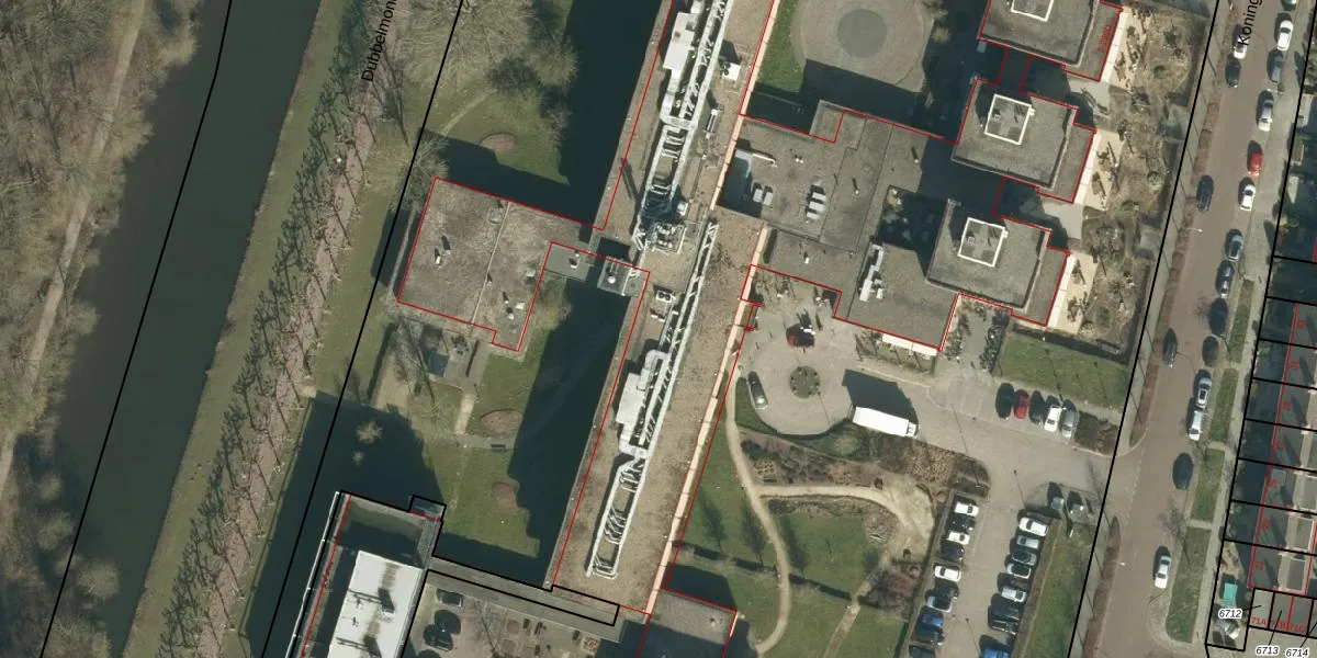 Het perceel waarop Koningstraat 290-111 staat heeft een oppervlakte van 2,8 ha. Dit is een zeer groot perceel. De perceeloppervlakte wordt geregistreerd door het Kadaster. Gedetailleerde informatie over de maten van dit perceel kunt u vinden in het rapport Kadastrale kaart met maatvoering van Koningstraat 290-111.