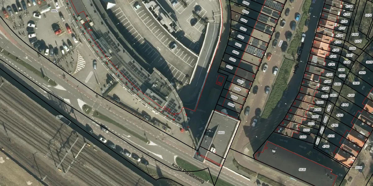 Korte Parallelweg 5 is gelegen op kadastraal perceel DDT00D6662. Deze kadastrale aanduiding is uniek en wordt gebruikt door het Kadaster om eigendomsrechten en andere zakelijke rechten vast te leggen. Het perceel maakt onderdeel uit van de kadastrale gemeente Dordrecht.