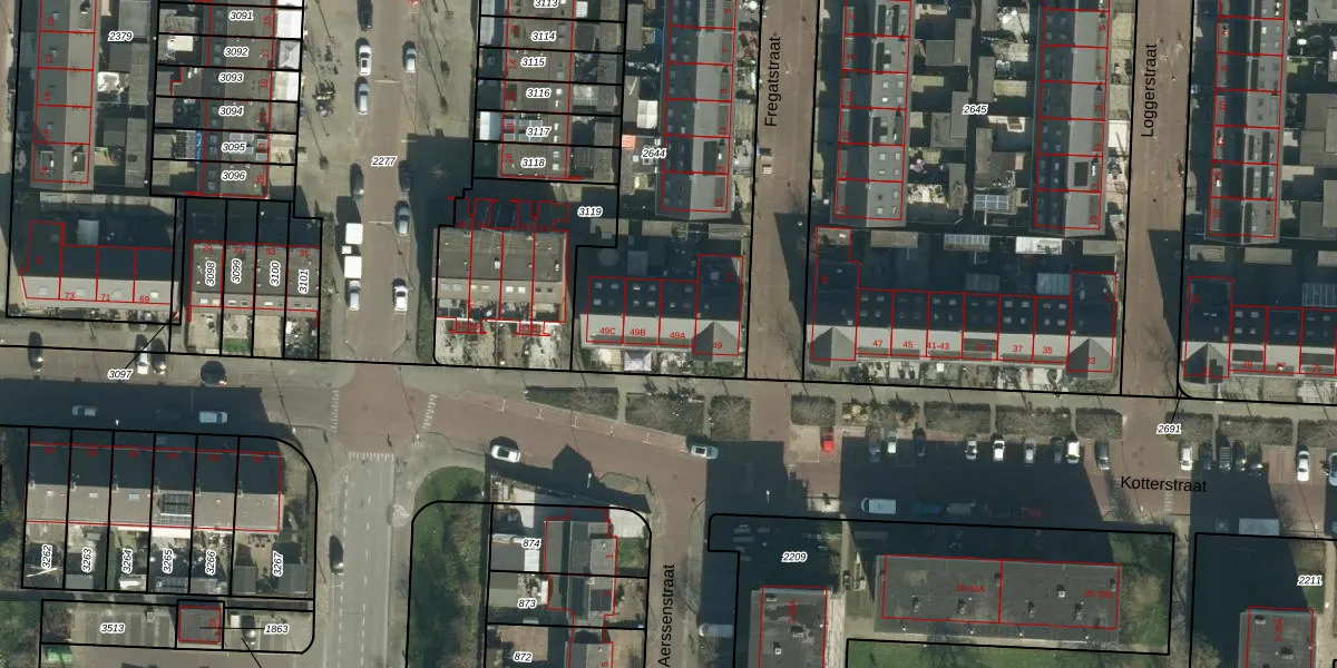 Het perceel waarop Kotterstraat 49-A staat heeft een oppervlakte van 1521 m². Dit is een zeer groot perceel. De perceeloppervlakte wordt geregistreerd door het Kadaster. Gedetailleerde informatie over de maten van dit perceel kunt u vinden in het rapport Kadastrale kaart met maatvoering van Kotterstraat 49-A.