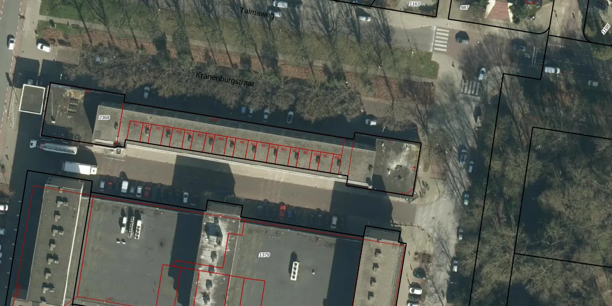 Het perceel waarop Kranenburgstraat 4-E staat heeft een oppervlakte van 1738 m². Dit is een zeer groot perceel. De perceeloppervlakte wordt geregistreerd door het Kadaster. Gedetailleerde informatie over de maten van dit perceel kunt u vinden in het rapport Kadastrale kaart met maatvoering van Kranenburgstraat 4-E.