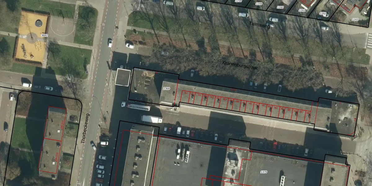 Het perceel waarop Kranenburgstraat 4-U staat heeft een oppervlakte van 1738 m². Dit is een zeer groot perceel. De perceeloppervlakte wordt geregistreerd door het Kadaster. Gedetailleerde informatie over de maten van dit perceel kunt u vinden in het rapport Kadastrale kaart met maatvoering van Kranenburgstraat 4-U.