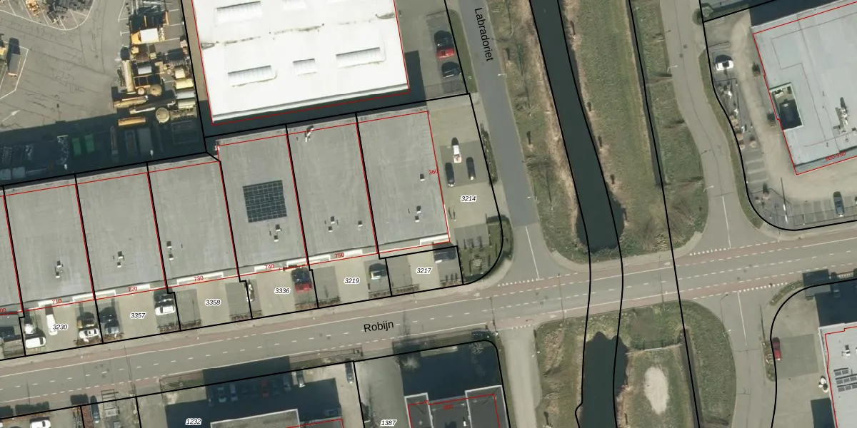 Het perceel waarop Labradoriet 360 staat heeft een oppervlakte van 1065 m². Dit is een zeer groot perceel. De perceeloppervlakte wordt geregistreerd door het Kadaster. Gedetailleerde informatie over de maten van dit perceel kunt u vinden in het rapport Kadastrale kaart met maatvoering van Labradoriet 360.