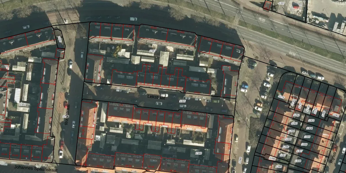 Lekstraat 20 is gelegen op kadastraal perceel DDT00I2347. Deze kadastrale aanduiding is uniek en wordt gebruikt door het Kadaster om eigendomsrechten en andere zakelijke rechten vast te leggen. Het perceel maakt onderdeel uit van de kadastrale gemeente Dordrecht.