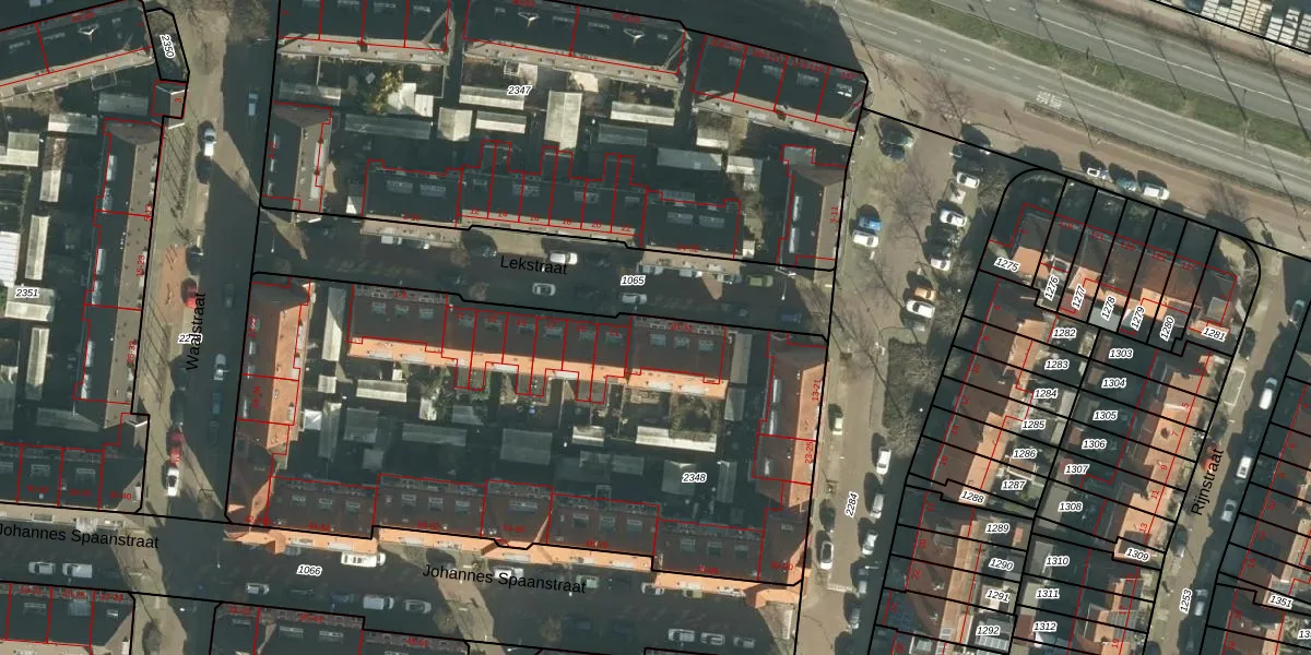 Het perceel waarop Lekstraat 25 staat heeft een oppervlakte van 3299 m². Dit is een zeer groot perceel. De perceeloppervlakte wordt geregistreerd door het Kadaster. Gedetailleerde informatie over de maten van dit perceel kunt u vinden in het rapport Kadastrale kaart met maatvoering van Lekstraat 25.