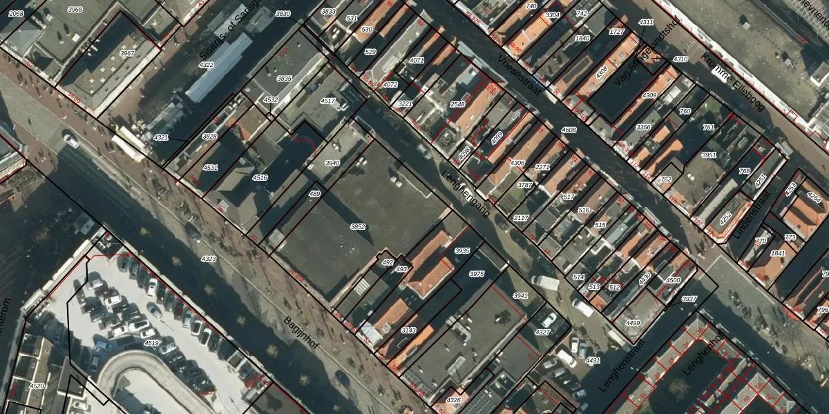 Het perceel waarop het adres ligt is DDT00-H-3852. De afkorting 'DDT00' staat voor kadastrale gemeente Dordrecht. Het perceel is kleiner dan gemiddeld in Dordrecht. Het perceel is 835 m² groot, terwijl het gemiddelde ligt op 2475,62 m². Het kleinste perceel in de kadastrale gemeente is 0 m² groot. De grootste perceeloppervlakte is 3,41 km². Op het perceel zijn 21 adressen aanwezig. De huidige grenzen van het perceel zijn digitaal in de Basisregistratie Kadaster (BRK) geregistreerd op 23-01-2008.