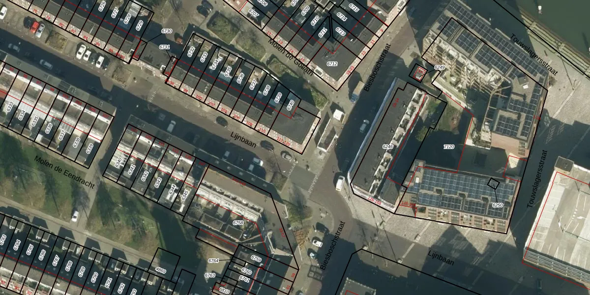 Het perceel waarop Lijnbaan 116 staat heeft een oppervlakte van 196 m². Dit is een middelgroot perceel. De perceeloppervlakte wordt geregistreerd door het Kadaster. Gedetailleerde informatie over de maten van dit perceel kunt u vinden in het rapport Kadastrale kaart met maatvoering van Lijnbaan 116.