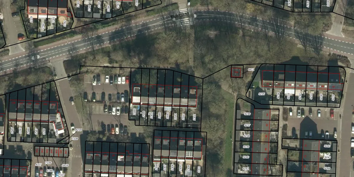 Gebruik de zoekbalk of klik op een perceel voor informatie over de adressen binnen dit perceel.