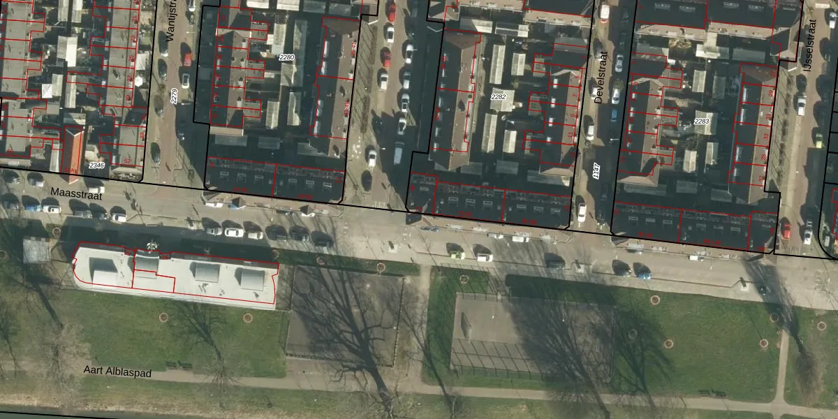 Het perceel waarop Maasstraat 70 staat heeft een oppervlakte van 2252 m². Dit is een zeer groot perceel. De perceeloppervlakte wordt geregistreerd door het Kadaster. Gedetailleerde informatie over de maten van dit perceel kunt u vinden in het rapport Kadastrale kaart met maatvoering van Maasstraat 70.