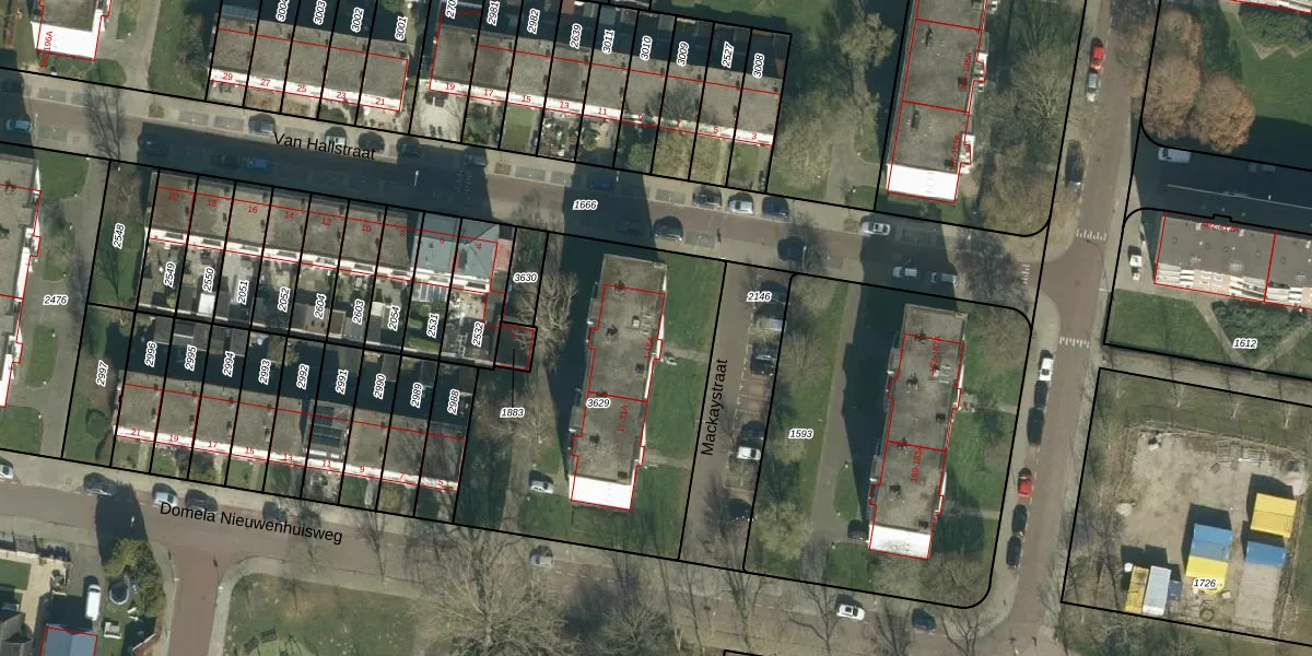 Het perceel waarop Mackaystraat 13 staat heeft een oppervlakte van 1447 m². Dit is een zeer groot perceel. De perceeloppervlakte wordt geregistreerd door het Kadaster. Gedetailleerde informatie over de maten van dit perceel kunt u vinden in het rapport Kadastrale kaart met maatvoering van Mackaystraat 13.