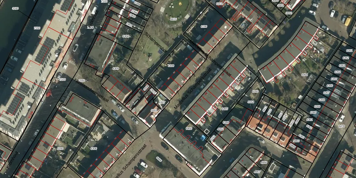 Marcellus Schampersstraat 21 is gelegen op kadastraal perceel DDT00C6308. Deze kadastrale aanduiding is uniek en wordt gebruikt door het Kadaster om eigendomsrechten en andere zakelijke rechten vast te leggen. Het perceel maakt onderdeel uit van de kadastrale gemeente Dordrecht.