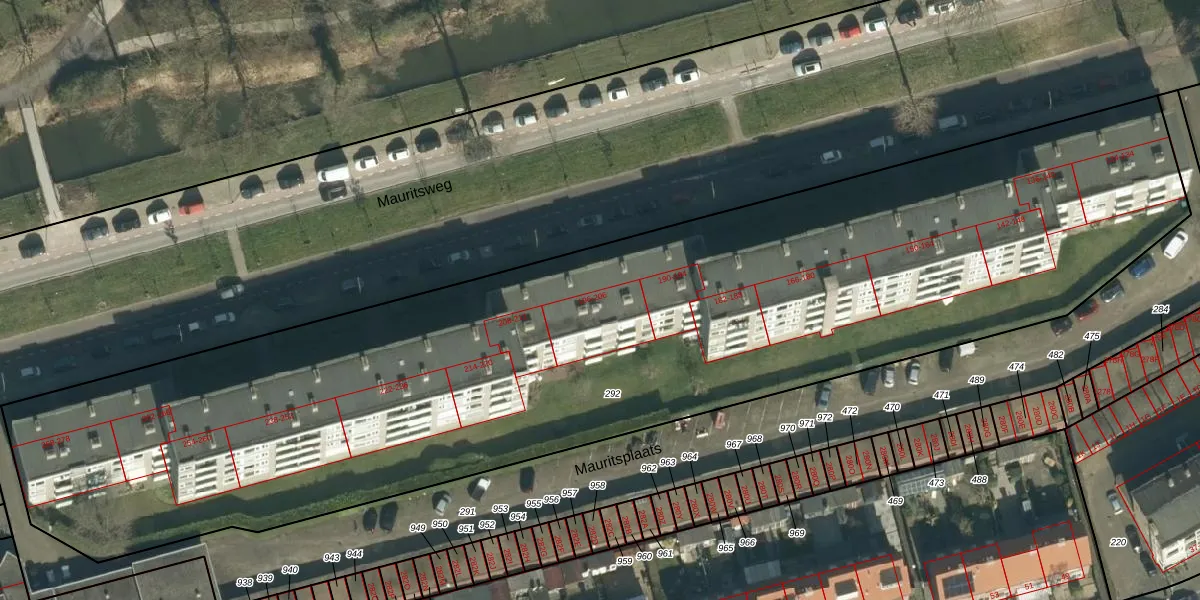 Het perceel waarop Mauritsweg 200 staat heeft een oppervlakte van 6050 m². Dit is een zeer groot perceel. De perceeloppervlakte wordt geregistreerd door het Kadaster. Gedetailleerde informatie over de maten van dit perceel kunt u vinden in het rapport Kadastrale kaart met maatvoering van Mauritsweg 200.