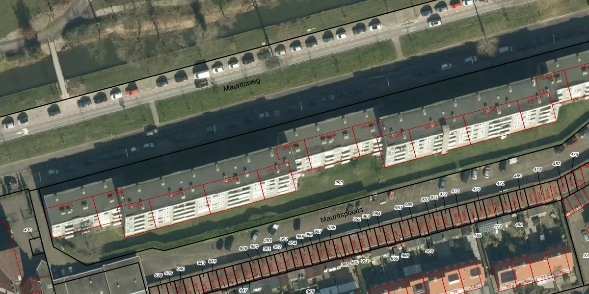 Mauritsweg 210 is gelegen op kadastraal perceel DDT00P292. Deze kadastrale aanduiding is uniek en wordt gebruikt door het Kadaster om eigendomsrechten en andere zakelijke rechten vast te leggen. Het perceel maakt onderdeel uit van de kadastrale gemeente Dordrecht.