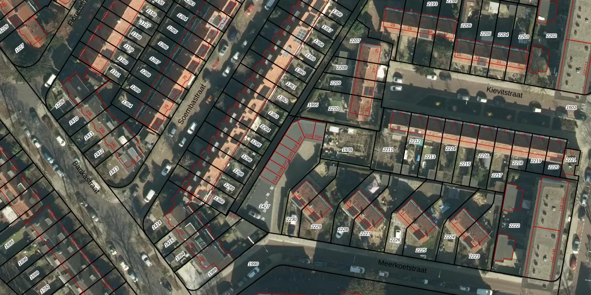 Het perceel waarop Meerkoetstraat 21-E staat heeft een oppervlakte van 553 m². Dit is een groot perceel. De perceeloppervlakte wordt geregistreerd door het Kadaster. Gedetailleerde informatie over de maten van dit perceel kunt u vinden in het rapport Kadastrale kaart met maatvoering van Meerkoetstraat 21-E.