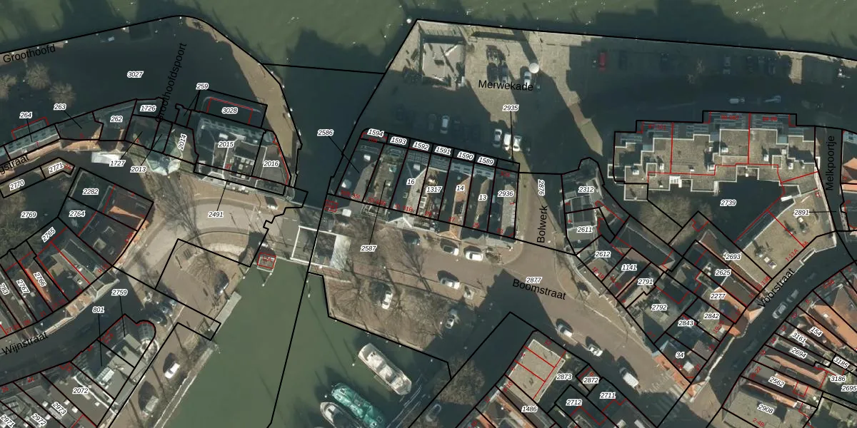 Merwekade 106 is gelegen op kadastraal perceel DDT00G1317. Deze kadastrale aanduiding is uniek en wordt gebruikt door het Kadaster om eigendomsrechten en andere zakelijke rechten vast te leggen. Het perceel maakt onderdeel uit van de kadastrale gemeente Dordrecht.