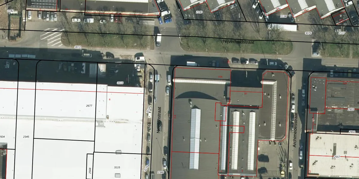 Het perceel waarop Newtonstraat 2 staat heeft een oppervlakte van 7230 m². Dit is een zeer groot perceel. De perceeloppervlakte wordt geregistreerd door het Kadaster. Gedetailleerde informatie over de maten van dit perceel kunt u vinden in het rapport Kadastrale kaart met maatvoering van Newtonstraat 2.