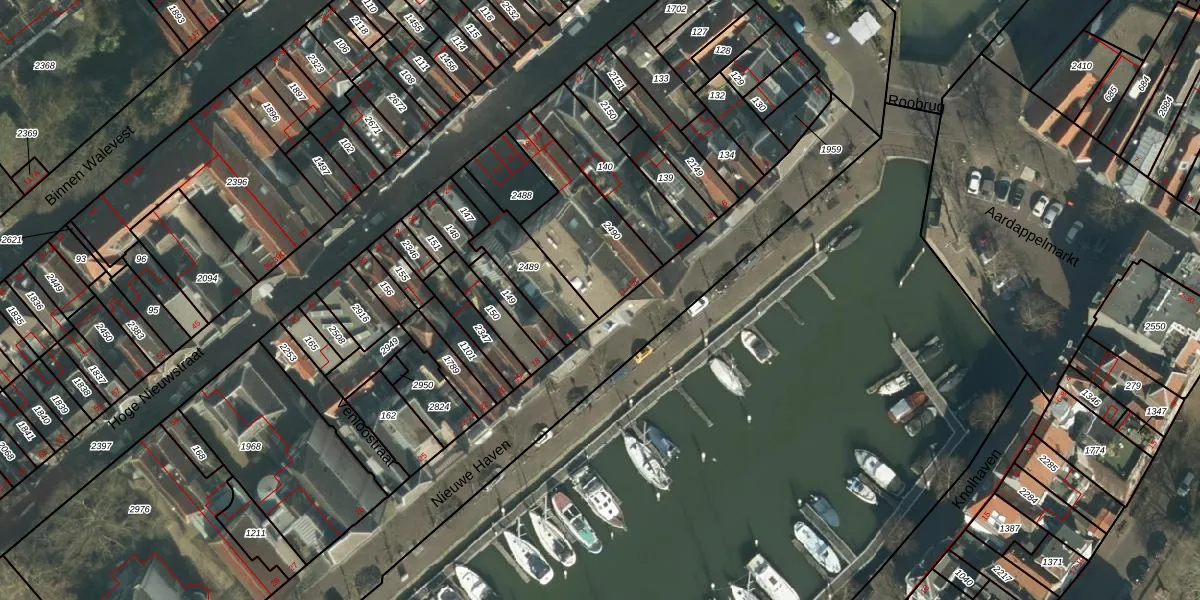 Het perceel waarop Nieuwe Haven 13-A staat heeft een oppervlakte van 336 m². Dit is een groot perceel. De perceeloppervlakte wordt geregistreerd door het Kadaster. Gedetailleerde informatie over de maten van dit perceel kunt u vinden in het rapport Kadastrale kaart met maatvoering van Nieuwe Haven 13-A.