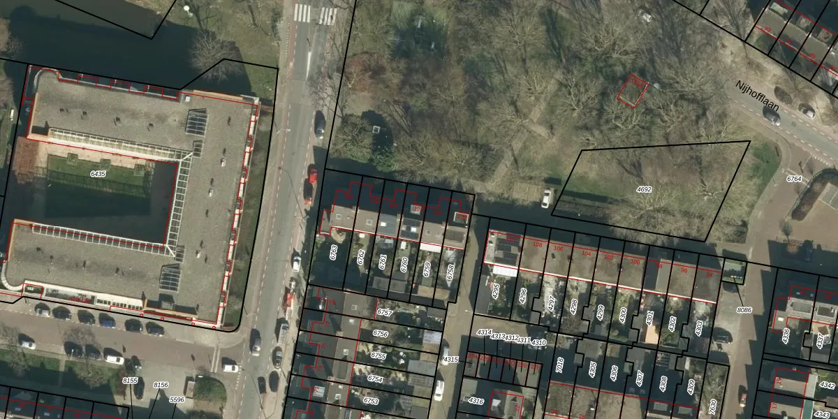 Het perceel waarop Nijhofflaan 124 staat heeft een oppervlakte van 152 m². Dit is een middelgroot perceel. De perceeloppervlakte wordt geregistreerd door het Kadaster. Gedetailleerde informatie over de maten van dit perceel kunt u vinden in het rapport Kadastrale kaart met maatvoering van Nijhofflaan 124.