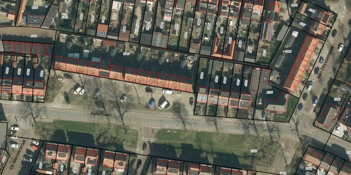 Nijhofflaan 23 is gelegen op kadastraal perceel DBD00A5083. Deze kadastrale aanduiding is uniek en wordt gebruikt door het Kadaster om eigendomsrechten en andere zakelijke rechten vast te leggen. Het perceel maakt onderdeel uit van de kadastrale gemeente Dubbeldam.
